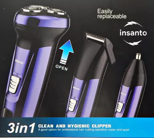 llego el nuevo combo 3 en 1 ideal para tener en casa, pues tiene una afeitadora de tres cuchillas flotantes y cortadora de bellos de nariz y oídos y peluquera de 3 ajustes.
